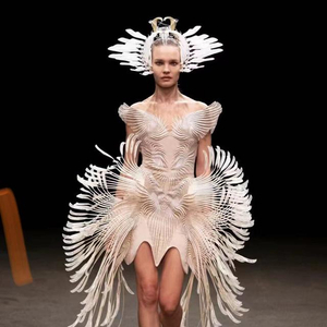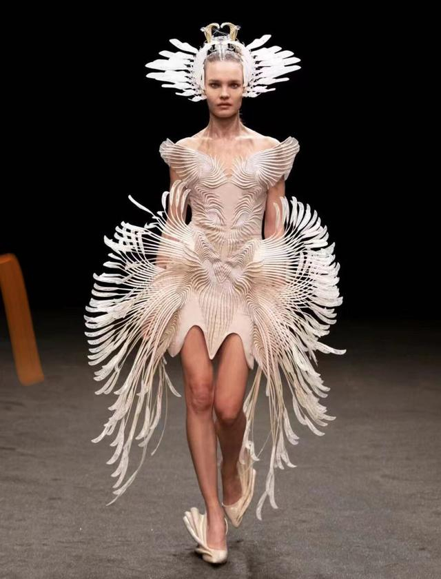 令人意外的是,这股潮流甚至“袭击”了高级定制领域,“要知道,高定可是时尚界最保守、最傲慢的金字塔尖,设计师向来只推崇丝绸、针织、皮革等传统布料。”李丰表示,近年来,随着高科技和可持续发展理念盛行,前卫的新型面料逐渐成为高级定制服装的亮点。被称为“3D打印女王”的荷兰时装设计师Iris van Herpen与海洋环保组织合作,利用可回收塑料等环保材料,在今年巴黎高级时装周上发布了令人惊艳的3D打印时装。
