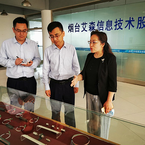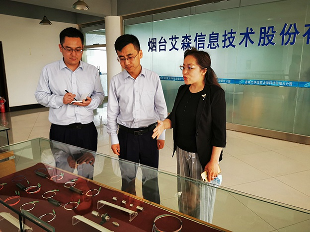 烟台农商行工作人员在艾森信息技术股份有限公司调研走访。记者 姚慧/摄