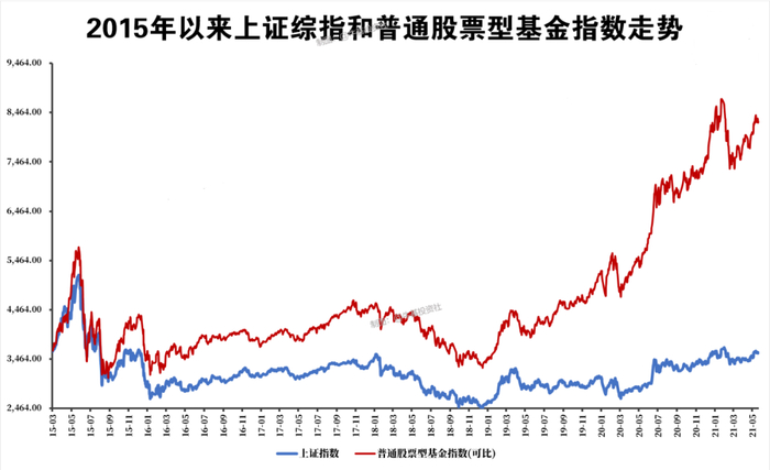 而普通股票型基金指数在这段时间却上涨了131%。