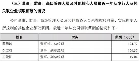 并且,蔡华波还拥有一份不菲的薪酬,据招股说明披露,2020年,蔡华波从公司领取薪酬达124.77万元。