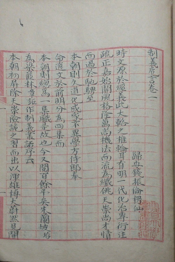 首先为时文作一番“尊体”的铺垫。然后历数明代制义王、唐、归、胡、金、陈、章、黄诸大家,指出清初刘子壮、熊伯龙根柢经史,为后学津梁。于是开坊选之禁,让士子得睹先正名家之风范。