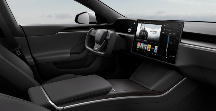 甚至新款 Model S 中控的那块儿大屏,算力比 PS5 还要高,基本与 Xbox Series X 持平,可以直接用手柄在中控屏上以 60 帧的刷新率玩儿《赛博朋克 2077》。基本相当于买车送了个游戏机,对中年已婚晚上回家不想上楼面对家庭的男性非常友好。