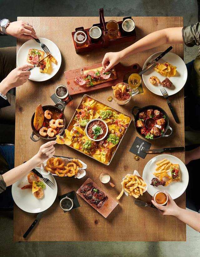 在新国贸饭店鲜啤吧,主厨Maiker Valdivia为店内十多种鲜酿啤酒,搭配了各种美食,包括辣牛肉玉米片、啤酒薯条、香肠土豆泥、照烧三文鱼沙拉等,几乎每款啤酒搭配不同的美食,都能产生意想不到的味蕾冲击。辣牛肉酱玉米片人气极高,牛肉酱在制作过程中添加了香料和新鲜番茄,配以辣椒粉、新鲜的番茄莎莎、牛油果酱和柠檬汁,口感香脆、味道浓郁。