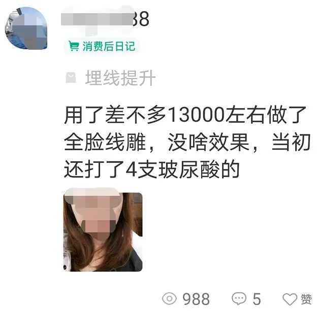 翻了几十个用户,很多都是做了一次后有后遗症,于是接着做其他项目补救,越陷越深,项目贵疗程还多,基本只要一入整容这个坑最后都要花个大几万,用户群以20多岁的女生居多。
