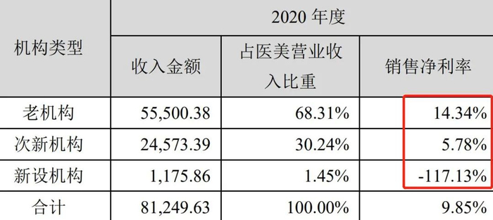 但整形医院挣钱少,财报提到开比较久的医院净利率才14%,而新开的医院则亏损严重。