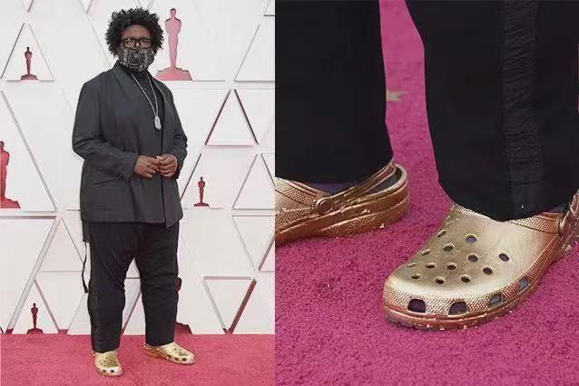 今年4月的奥斯卡红毯上,音乐人Questlove脚上的金色“洞洞鞋”同样引发了网友热议。