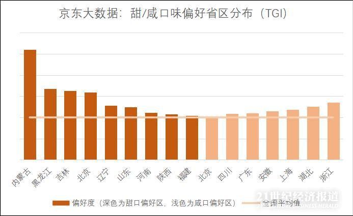 数据发现,越是“正常”的口味,如腊肠、蛋黄、紫米、芝士等,各省区的偏好差异越小,也就是大家接受度都差不多;而越是奇葩的口味,区域差异越大,也越能说明不同地域人们对美食的不同追求。