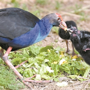 在深圳野生动物园紫水鸡展区,紫水鸡夫妇正忙碌着为一窝5只可爱的紫水鸡宝宝喂食物。紫水鸡夫妇对自己的孩子尽职尽责,用前脚趾抓住食物,然后用喙撕成小块细心地喂给孩子,保证都能吃饱,一个也不能少,场面温馨满满。小家伙们身上长着黑色绒毛,吃饱后显得特别活跃,到处跑动,紫水鸡夫妇伴随左右。紫水鸡夫妇在草地上翻找食物,小家伙们也跟着父母学习觅食技能,样子特别的可爱。