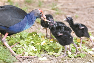 动物园饲养员介绍,目前这5只紫水鸡宝宝已可以离巢自由活动。雏鸟为早成鸟,还需要父母共同喂养,10多天后才可自行觅食,至于独立生活,还得过一个多月。