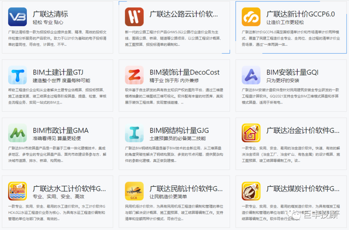 造价业务不光应用在房地产,根据广联达刚上市时公布的数据,我们最为熟知的房地产企业客户,在建筑造价里占到的比重其实只有10%,剩下是应用在各领域的建设单位和施工单位。因此,广联达根据不同的应用领域,有不同的产品系列:
