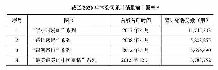 已策划如“半小时漫画”系列、“藏地密码”系列及《岛上书店》等一批百万级销量的图书。截至2020年末,“半小时漫画”系列的累计销售册数已达到1174.53万册。