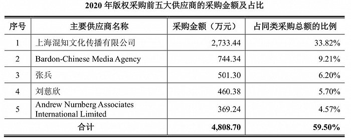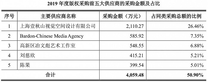 在读客列出的版权采购前五大供应商采购金额及比例中,上海混知文化传播有限公司(2020年4月更名,此前用名:上海壹秋山视觉空间设计有限公司)。其对应的作品,就是“半小时漫画”系列。