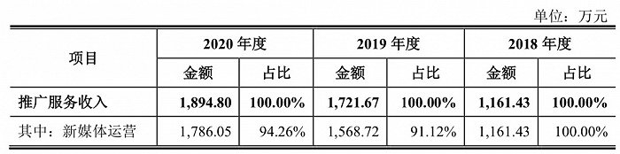 2017-2020年,新媒体运营收入分别为810.74万元、1161.43万元、1568.72万元及1786.05万元。该业务收入,主要是来自于“书单来了”“影单来了”等微信公众账号产生的推广服务收入。