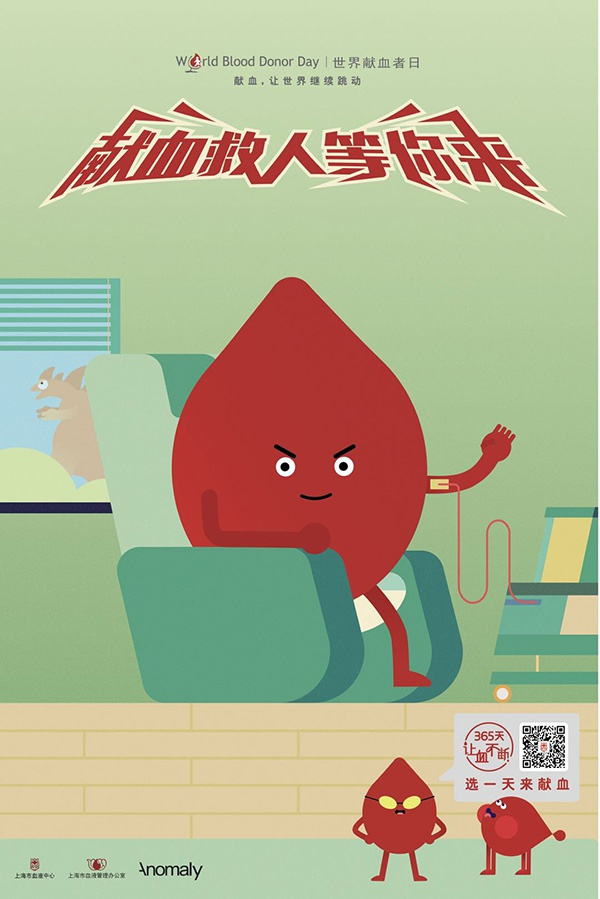 上海市血液中心今年推出的新版“血人”海报形象。