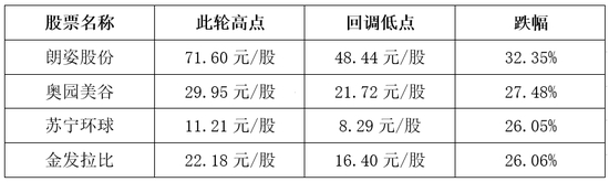 受此影响,自2020年11月开启狂飙以来,医美服务概念股整体迎来一波回调,跌幅基本是此轮高点下探26%~33%(见下图)。