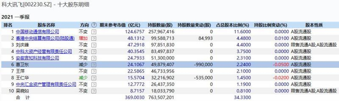 Wind数据显示,私募大佬葛卫东是科大讯飞的十大股东之一。截至2021年第一季度末,葛卫东持有科大讯飞2.24%股票。对比2020年年报可以发现,葛卫东在一季度小幅套现9.9万股,也就是几百万元。若按最新股价计算,葛卫东持有科大讯飞股票价值达28.8亿元。