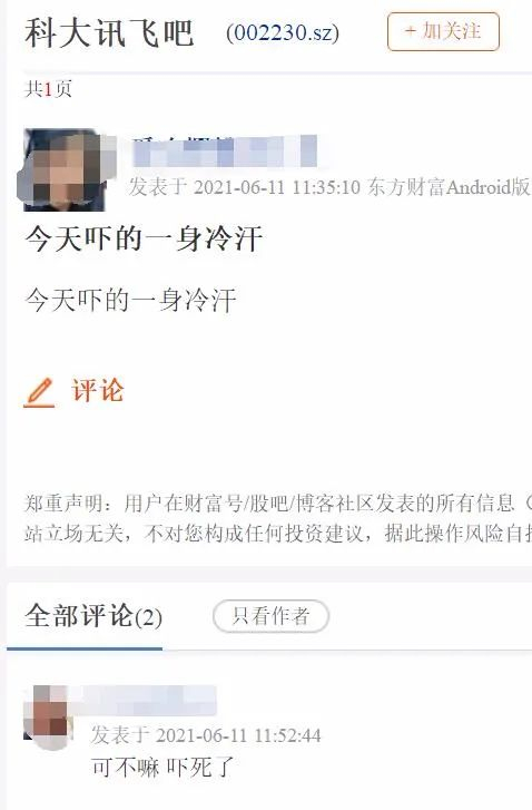 截至一季度末,科大讯飞股东户数为23万户。股价突然闪崩,股吧瞬间就炸开了锅,网友们纷纷留言。有网友被眼前这一幕砸懵,“公司岀什么事,股票闪崩”,“有啥利空?”,还有投资者留言称,“还好开盘跑了”、“今天吓的一身冷汗”、“昨天买,今天就跌停”。