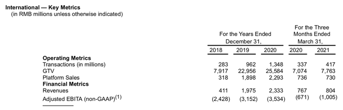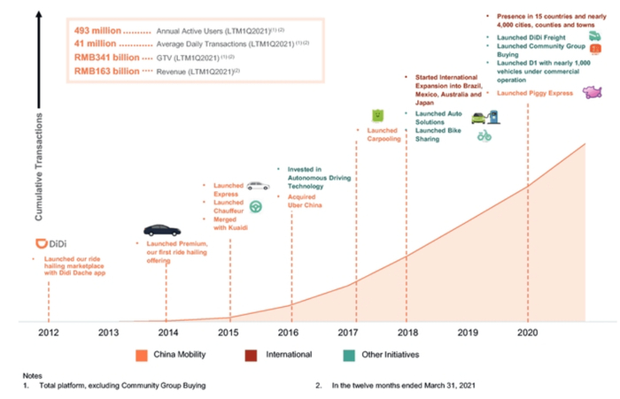 运营情况上,在截至2021年3月31日的12个月内,滴滴已经在全球15个国家、4000余个城市和城镇开展业务。全平台总交易额为3410亿元,其中,滴滴核心平台GTV(指中国出行和国际市场的GTV)达到2442亿元。除社区团购外的全部业务日均单量达到4100万单,年度活跃用户量达到4.93亿,年度活跃司机数量为1500万。