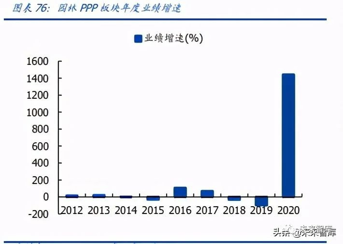 园林行业供需格局已明显改善,行业经营环境趋于良好。2020 年园林 PPP 板块实现营 收与业绩增速分别为-7%/+1442%,同比变动+7/+1540 个 pct,业绩大幅上升主要系 19 年行业供给侧收缩致使板块整体业绩基数较低及部分园林公司前期投入建设的 PPP 项目陆续进入运营期,当期项目收益增加较多。17-19 年,园林板块因地方政府去杠杆、 信用收缩等原因持续低迷,20 年行业出现恢复迹象。展望后续,生态建设是中国高质量 发展前置要求,中共中央“十四五”规划建议中强调到 2035 年要“生态环境根本好转, 美丽中国建设目标基本实现”,园林绿化、水生态治理等需求将持续存在,行业中长期成 长空间广阔。在行业供需新格局中,过往注重资产负债表质量稳健经营、资金充裕的企 业有望显著受益,营收业绩有望持续稳健增长。