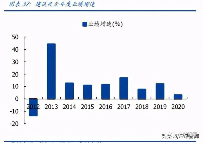 2020 年收入增速排名靠前的子板块为地方国企、设计咨询、钢结构、建筑央企,增速分 别为 16%/15%/14%/13%;排名靠后的是园林 PPP、装饰、国际工程,增速分别为 -7%/-6%/-3%。2020 年业绩增速排名靠前的子板块为园林 PPP、化学工程、钢结构、 地方国企,增速分别为 1230%/48%/38%/16%,园林 PPP 板块业绩增速异常较高主要 因 上 年 基 数 过 低 ;排 名 靠 后 的 为 专 业 工 程 、 国 际 工 程 、 装 饰 , 增 速 分 别 为 -110%/-46%/-27%。