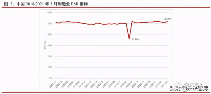 中国、美国、欧洲、日本、全球制造业 PMI 在 2019 年呈下降趋势,在 2020 年疫情 影响初期,景气度受挫,下降至近十年历史低位。自 2020 年初疫情爆发,中国 2020 年 2 月制造业 PMI 跌落近年低位 35.7%,3 月回升并连续 13 个月位于荣枯线上。2021 年 3月环比提高 1.3 个百分点至 51.9%。中国制造业 PMI 指数显示国内经济保持复苏态势, 制造业景气度良好,行业仍处于扩张阶段。