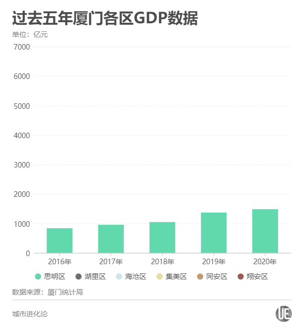 相反,厦门岛外各区近年来经济增速也都处于较高水平。只是在二者同时保持高速增长的情况下,岛内基数更大,增量也更大,比重提升也相对更快。