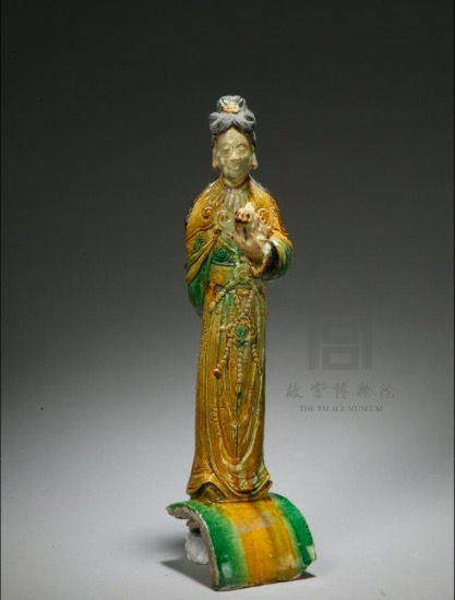 三彩琉璃手托兔女立像瓦