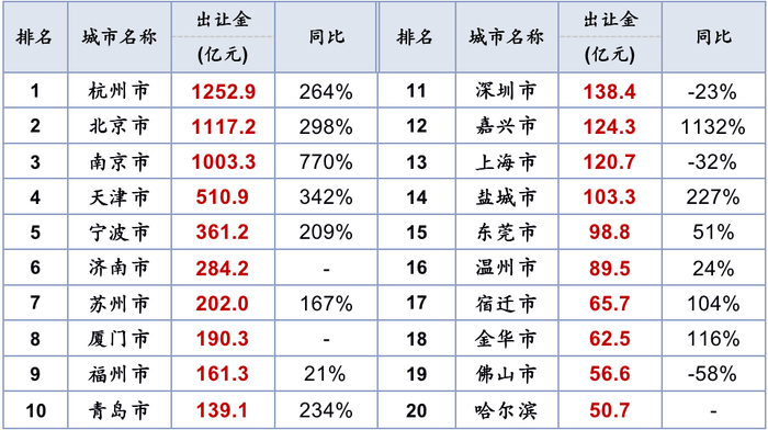 2021年5月全国土地出让金TOP20