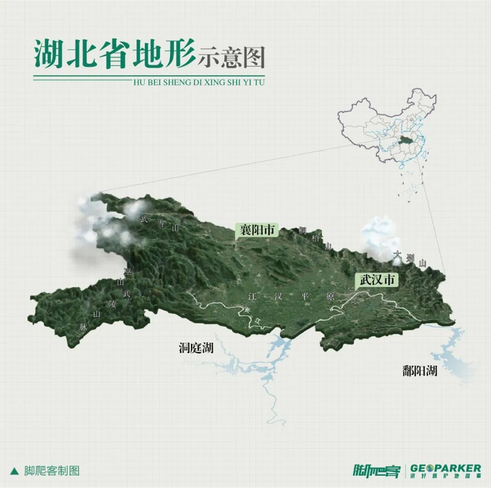 湖北省地形示意图©脚爬客