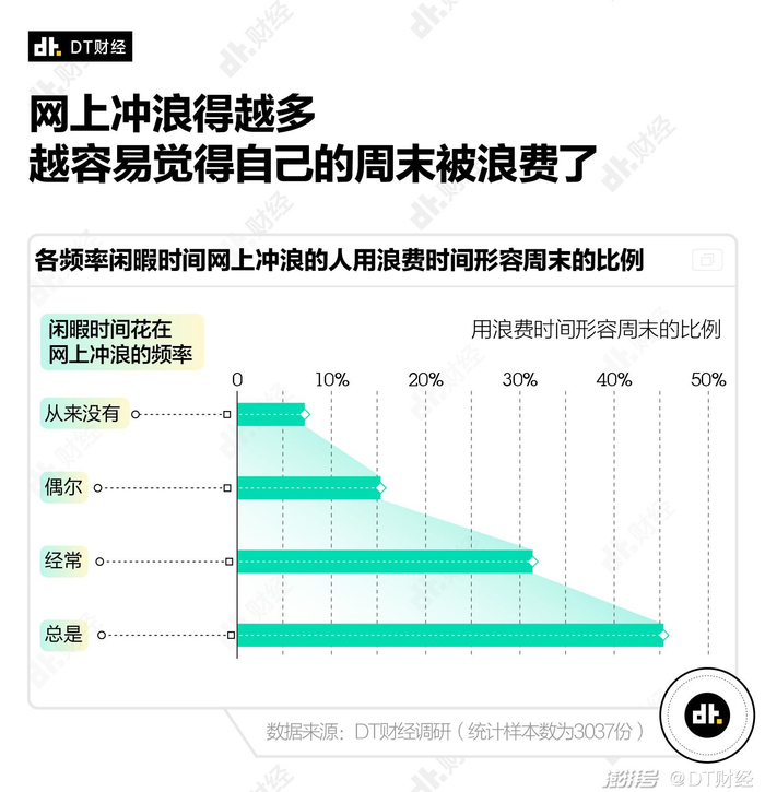 而网络上精彩纷呈、不断更新的讯息,能够让人在当下忘掉无所不在的焦虑感。因此,有68%的人热衷于在闲暇时间栖居在网上,睁眼开始刷手机、刷视频,成为度过周末的一种流行方式。