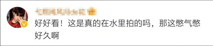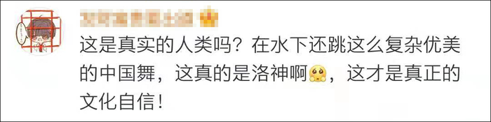 还有许多网友给水中跳舞的舞者“献上膝盖”:“这真的在水里拍的吗?憋气憋好久啊。”