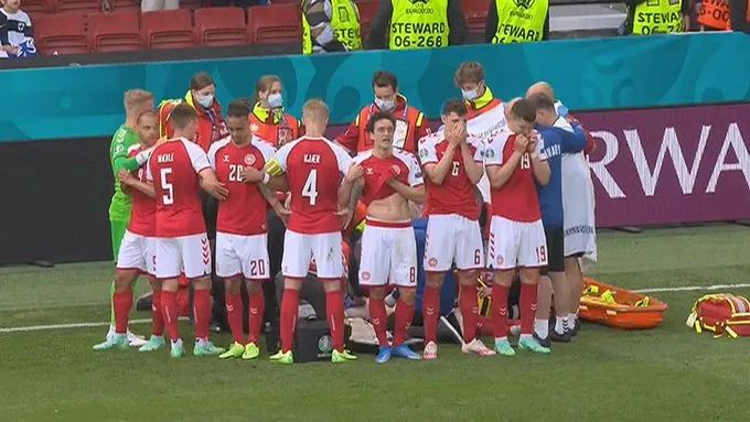 北京时间6月13日凌晨,欧洲杯B组丹麦对阵芬兰的比赛在进行到第43分钟时,丹麦队最大牌的球星埃里克森在丹麦禁区附近的边线,在无球员接触的情况下,突然倒地。
