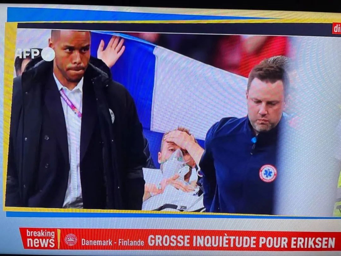 法新社在现场拍到的一线照片显示,埃里克森在被担架抬走离场时已经睁开双眼,恢复了意识。