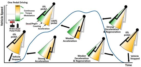 这个事情就很诡异。据说所有特斯拉司机都喜欢单踏板模式驾驶,很拉风。因为在这种模式下,扭矩可以在最大正扭矩和负制动扭矩之间连续调节。也就是说通过油门踏板来调节车速。而驾驶员需要踩下刹车踏板的唯一时刻,是需要完全停止或者紧急刹车。