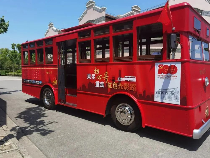 上海影视乐园“初心号”红色巴士行驶在沿线分布的8个站点上,可以通过互动体验、街头观演、场馆参观、影片展映等多种形式,在刻有不同时代印记的影视建筑、拍摄场景中,追溯百年大党的奋斗历程。