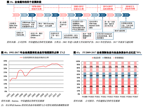 全食超市成立于1978年,系全美最大有机生鲜食品超市,FY2017营收超160亿美元,净利润2.5亿美元,美国有机食品市场市占率超30%。我们复盘全食发展历程,探究其对国内生鲜超市的借鉴意义。