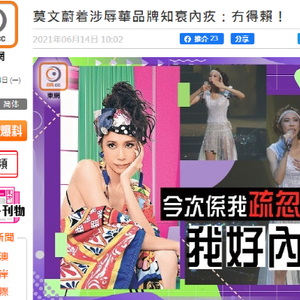 香港“东网”14日报道称,在完成一连3场的演出后,莫文蔚在后台受访,并首度回应《妇女新知2021》MV中身穿涉及辱华品牌的服装而引起众怒一事,她说好内疚,她承认是自我疏忽,又称此次是个好好的教训。