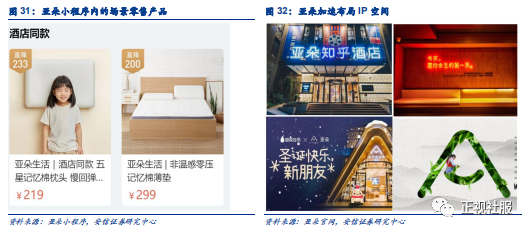 公司发力场景零售打造生活方式品牌,覆盖衣、食、住、行、娱乐等品类。亚朵集团旗下场景零售品牌,秉持“A Touching Moment 质感生活”的品牌理念,甄选来自全球的生活方式精品,涵盖衣、食、住、行、娱乐等品类。公司目前拥有三大原创生活方式品牌,休眠场景品牌「αTOUR PLANET亚朵星球」、气味美学品牌「SAVHE 萨和」,以及全方位在途出行品牌「Z2GO&CO.」。消费者可以在入住期间亲身体验亚朵的产品,如果他们对产品感到满意,只需在手机上对产品进行简单的扫描,就可以跳转到电子商店进行购买。