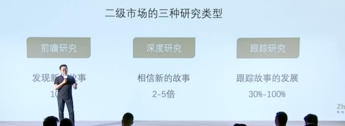 第二种是深度研究,市场上已经出现了这个Thesis,有人在说可能是这样的,但是有人信有人不信,这个时候如果你对这个行业、这个公司进行深度的了解,那么你就可以在别人不信的时候买入。
