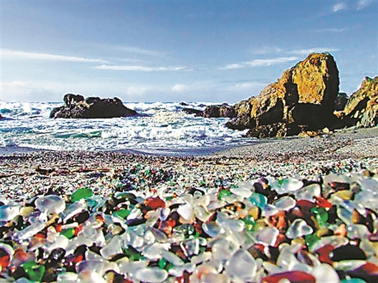 美国加州布拉格堡的玻璃海滩,目前是MacKerricher州立公园的组成部分,也是一个热门的旅游景点。在这里,游客是不允许带走沙滩上任何一块美丽的玻璃石的。
