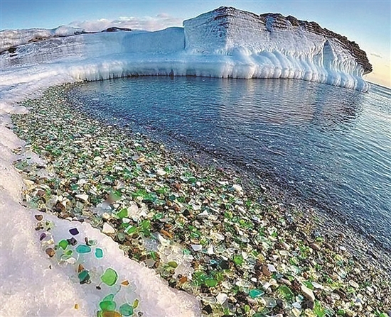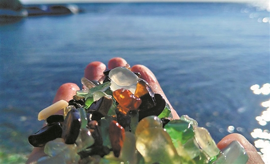 经过大自然神力的“处理”,原本充满危险的一大堆玻璃碴,就这样被海水磨去了棱角,成为一个个美丽又圆润的形似鹅卵石的小颗粒,形成了这样的一道风景。同样的故事至今仍在地球上的不少滨海地区不断上演。