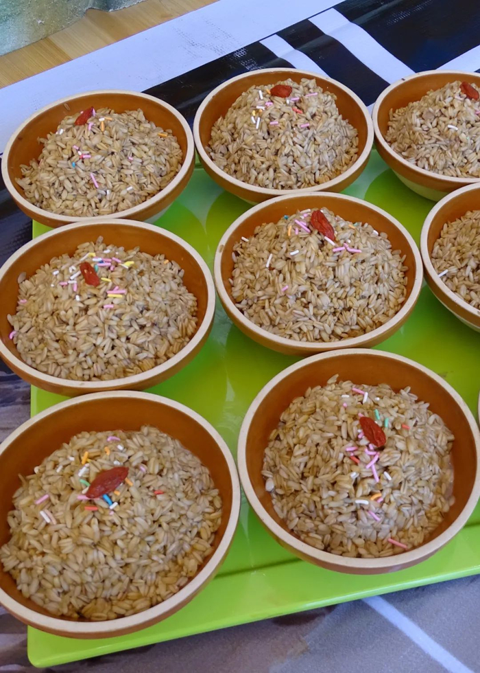 吃小麦甜醅,更要掌握住麦粒煮沸的火候与时间。煮得太软,一发酵几乎成了汤水;煮得太硬,又会吃起来如嚼石子,没有软糯的口感。看到麦子刚好“开花”,疏松而不烂,露出白嫩饱满的麦仁,说明煮好了。