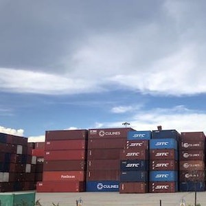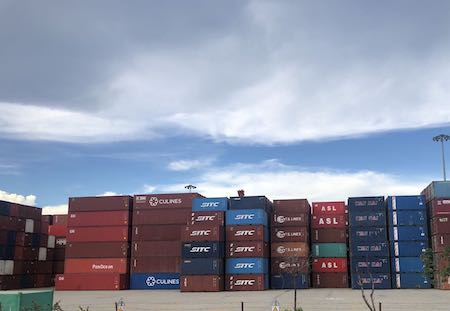 第一财经记者注意到,此前本该运至盐田港的集装箱,由于班轮跳港,继而转运至其他周边港口,造成当地货物激增,集装箱短缺的情况进一步加剧。
