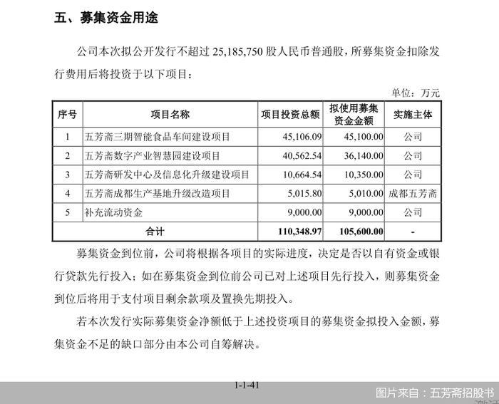 具体来看,五芳斋募投项目包括五芳斋三期智能食品车间建设项目、五芳斋数字产业智慧园建设项目、五芳斋研发中心及信息化升级建设项目、五芳斋成都生产基地升级改造项目以及补充流动资金,拟投入募集资金金额分别约为4.51亿元、3.614亿元、1.035亿元、5010万元、9000万元。