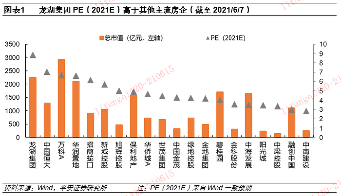 1.1 龙湖PE(2021E)在20家主流房企中排名首位
