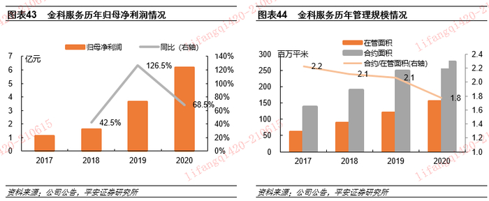 1)物业管理:2020年末金科智慧服务在管面积1.56亿平,合约面积2.77亿平米;2020年归母净利润6.2亿元,同比增68.5%。2016年以来稳居中指院全国物管十强、西南第一。