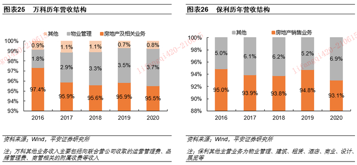 1)万物云:2020年末在管面积5.66亿平,其中47%来自万科以外的项目;2020年全口径营收182亿元,过去5年复合增速为34%。