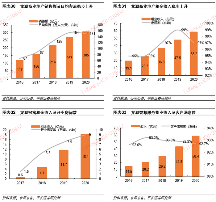 3)龙湖智慧服务:2020年末实际管理面积1.72亿方,连续12年客户满意度90%+,2020年物业收入58.4亿元,同比增长36%。