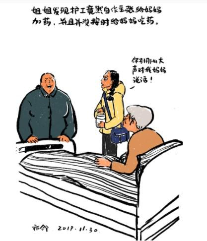 在医院头两天,妈妈还比较安心,配合度也高,可后面几天就慢慢开始不安了,整天吵着看电视,要么就吵着出院。有一天半夜,我因为太累了,打了个盹,妈妈就自己跑了出去。找回妈妈后,我睡意全无,又自责又担忧。