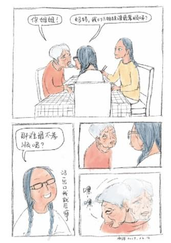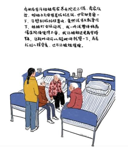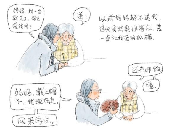 下这个决心对我来说很不容易,但姐姐的身体实在需要休养,我试着把自己放在“衰老观察者”的角度来对待这件事,似乎就没那么艰难了。可是和姐姐商量好这个决定后,没过多久,姐姐打来电话,原来她带妈妈去了一家离家很近的养老院。这家养老院并不是专门针对老年认知症患者的,我担心妈妈在这样的地方会被其他老人排斥,因为妈妈目前对外界对待她的态度依然十分敏感。